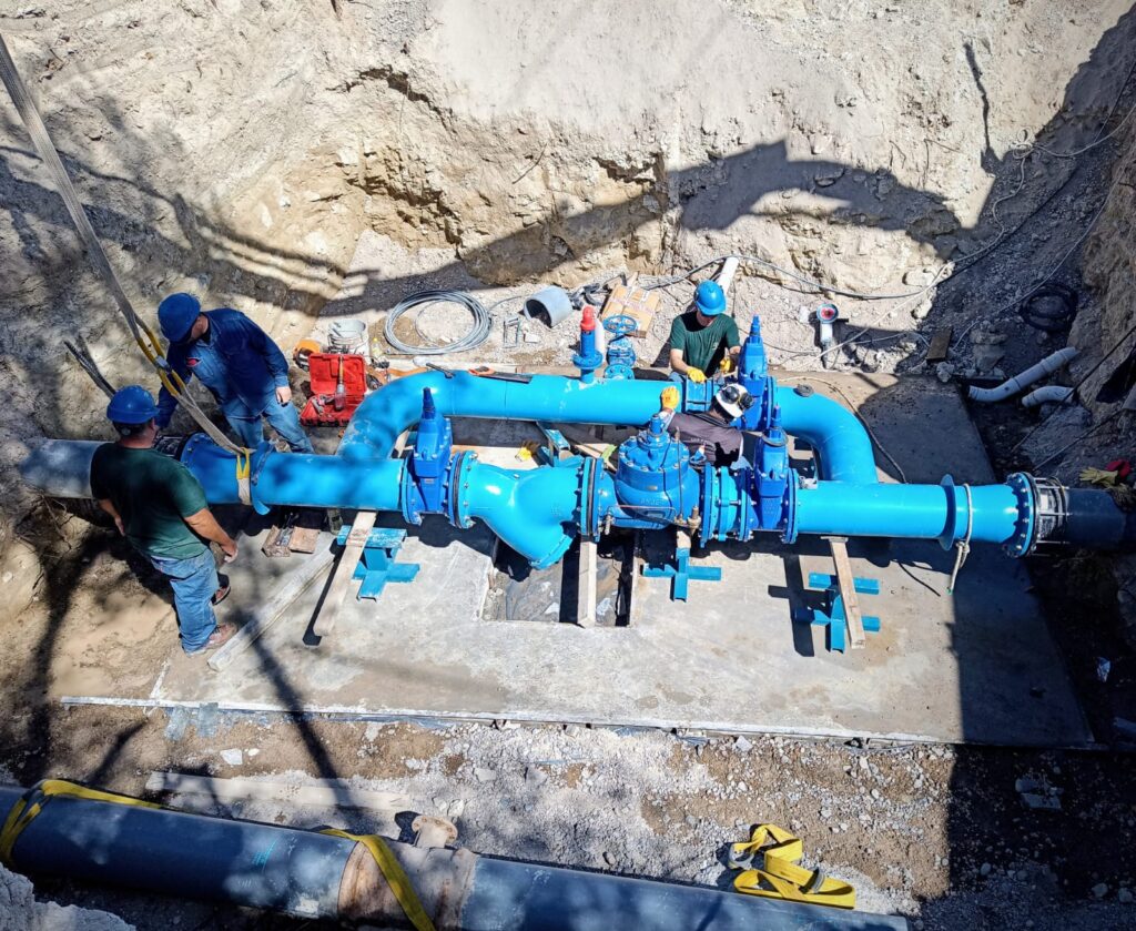 Para lograr que el Sub-Acueducto funcione con mayor estabilidad, es imprescindible instalar este sistema de reducción de presión. De acuerdo a los estudios realizados por nuestro equipo técnico, la ubicación correcta para el sistema de reducción, es en la intersección de las calles 20 de Junio y Ferrocarril Patagónico. El nuevo sistema de reducción, consta de una válvula reductora de presión de origen canadiense de 355 MM, tres válvulas de corte, un filtro y cañerías de vinculación, todo construido en acero y con un peso total de 2.000 kilogramos aproximadamente. Para poder incorporar la reducción al Sub-Acueducto Norte, fue necesario construir una cámara de hormigón armado, la cual consta de 4,80 metros de largo y 2,8 de ancho y una profundidad superior a los 3,5 metros. Es importante aclarar que la ejecución del proyecto, cómo la realización de la obra, fue llevada adelante con personal técnico de Servicoop, bajo las directrices de la Gerencia de Agua y Saneamiento.