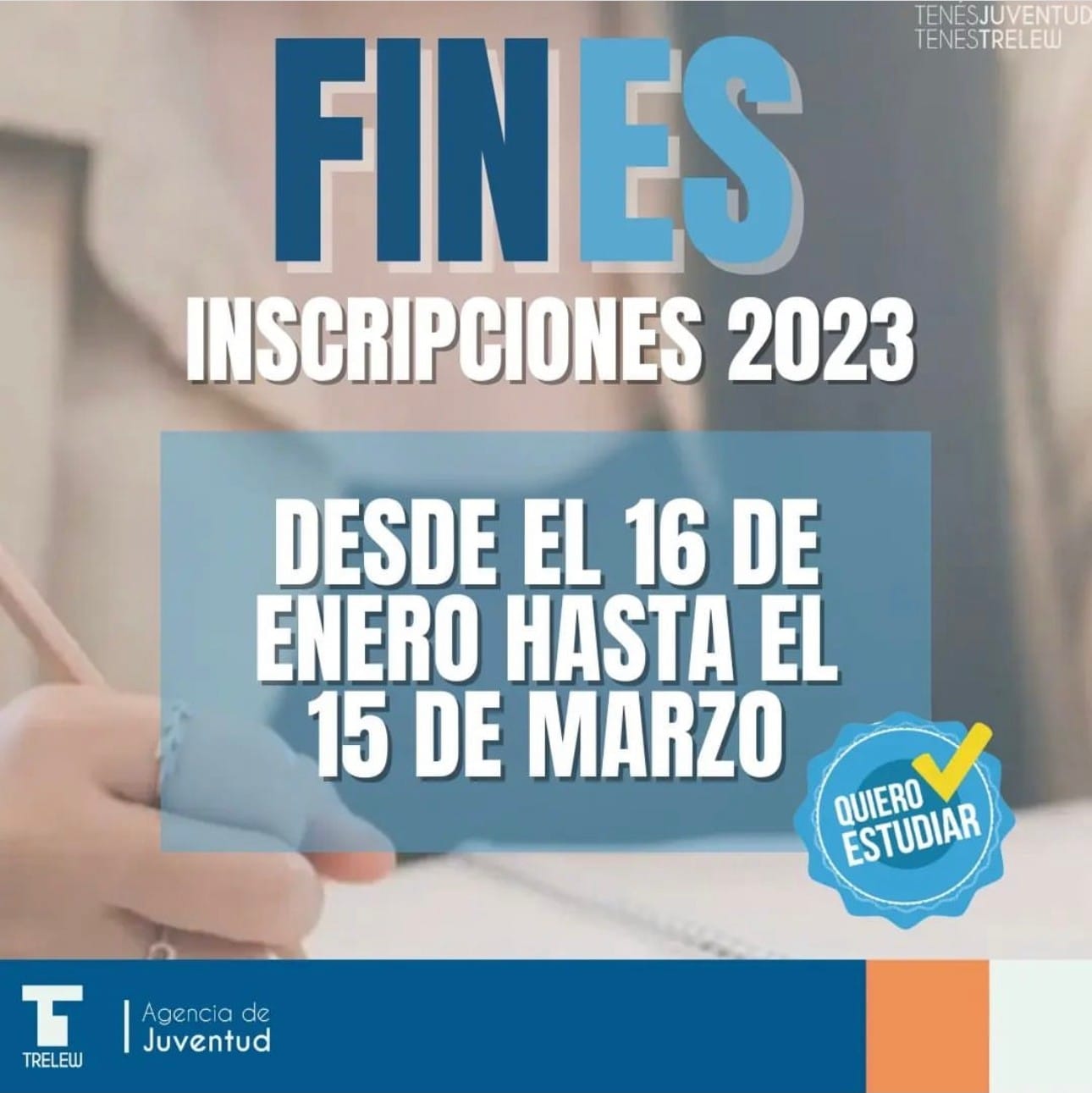 La Agencia de Juventud de la Municipalidad de Trelew, informa que se encuentran abiertas las preinscripciones para que personas mayores de 18 años puedan terminar los estudios primarios y secundarios a través del Plan FinEs.