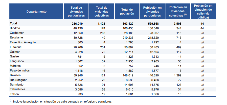 El INDEC dio a conocer hoy los resultados provisorios del Censo 2022 que se realizó en toda la Argentina en mayo de 2022. Los datos contabilizaron una población superior a los 46 millones de habitantes en todo el país, en tanto que en la provincia del Chubut se registraron más de 600.000 personas.