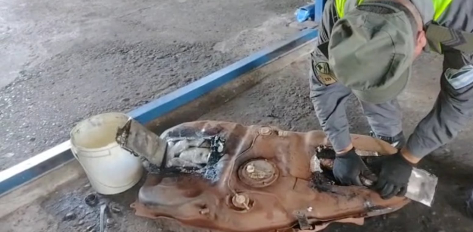 Durante la inspección del rodado, los gendarmes divisaron que la tapa de la bomba de combustible presentaba anomalías y que estaba sujetada con precintos.