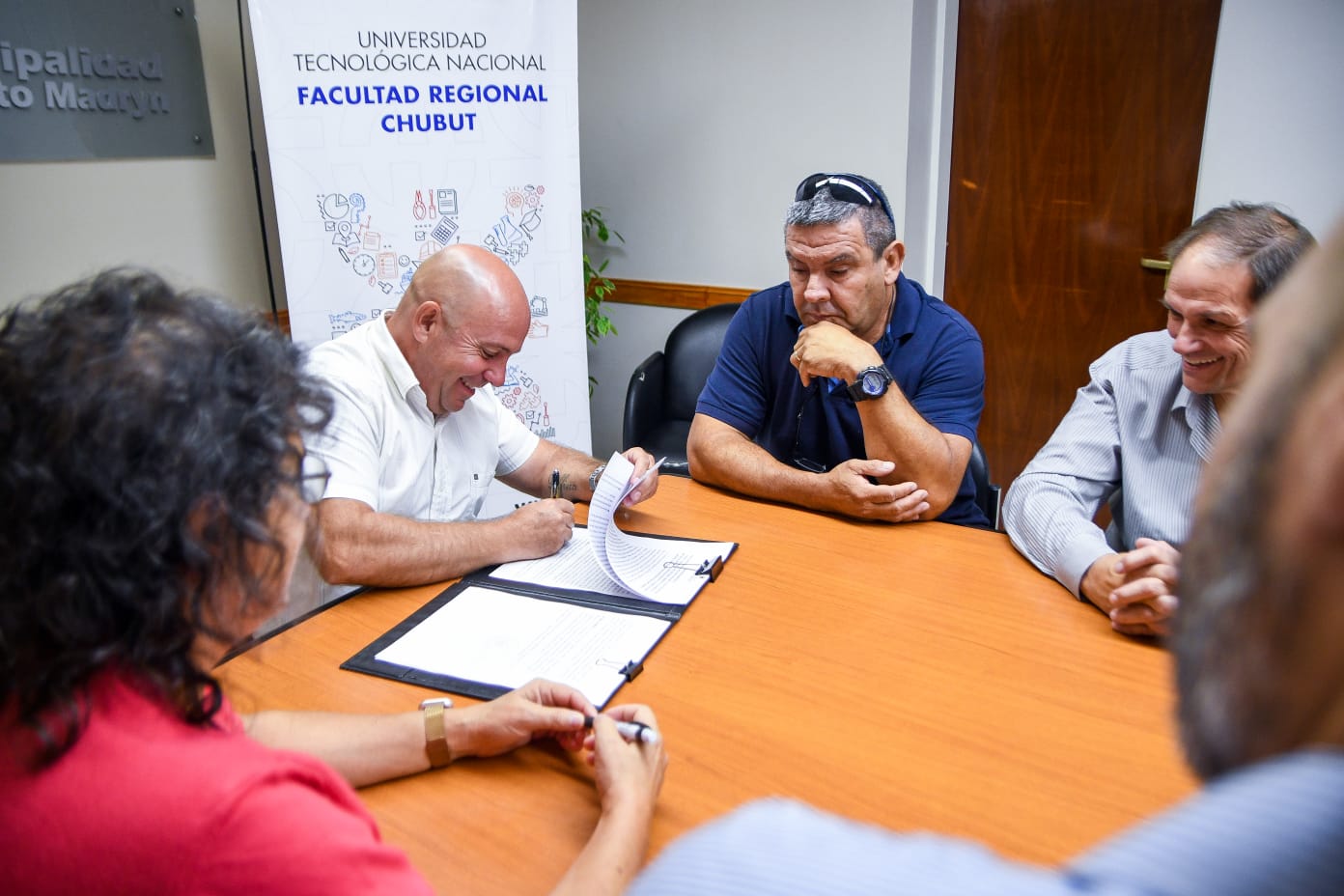 Concretamente, el documento fue firmado por el Jefe Comunal; la decana de la FRC-UTN, Diana Bohn; el presidente de Servicoop, Harry Woodley, y el titular de la Asociación de Electricistas de Puerto Madryn, Eduardo Boutinet.