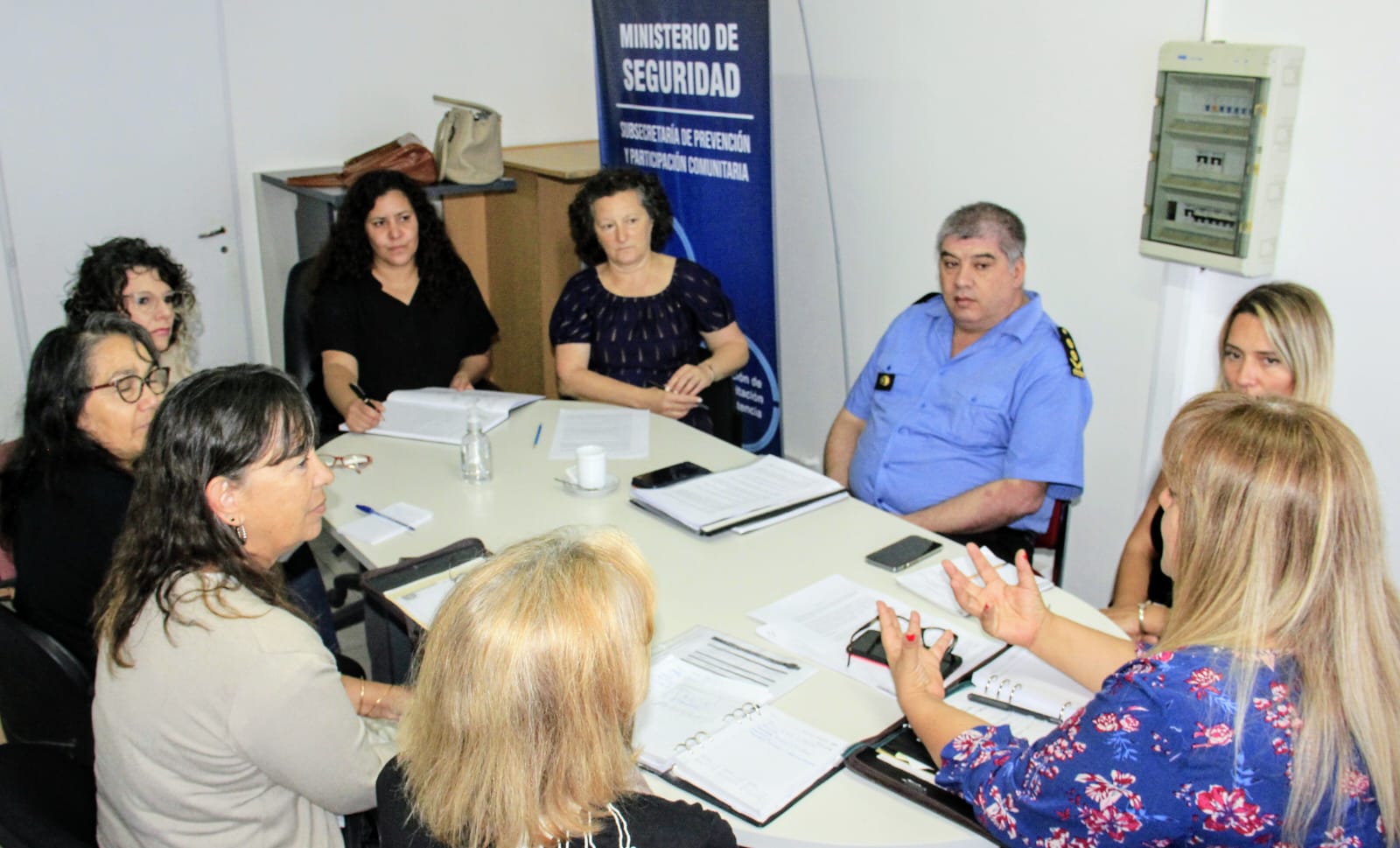 En el encuentro, participaron la subsecretaria de Prevención y Participación Comunitaria, Sandra Muñoz; la directora provincial de Prevención del organismo de Seguridad, Valeria Arrazate; el comisario inspector Claudio Troncoso, jefe del área de Policía Comunitaria; Roxana Laudani y Mónica Yamaguchi presidenta y vicepresidenta de la Asociación de Mediadores de Chubut; la tesorera Graciela Rodríguez y Corina Carrizo que se desempeña como la revisora de cuentas de la organización.