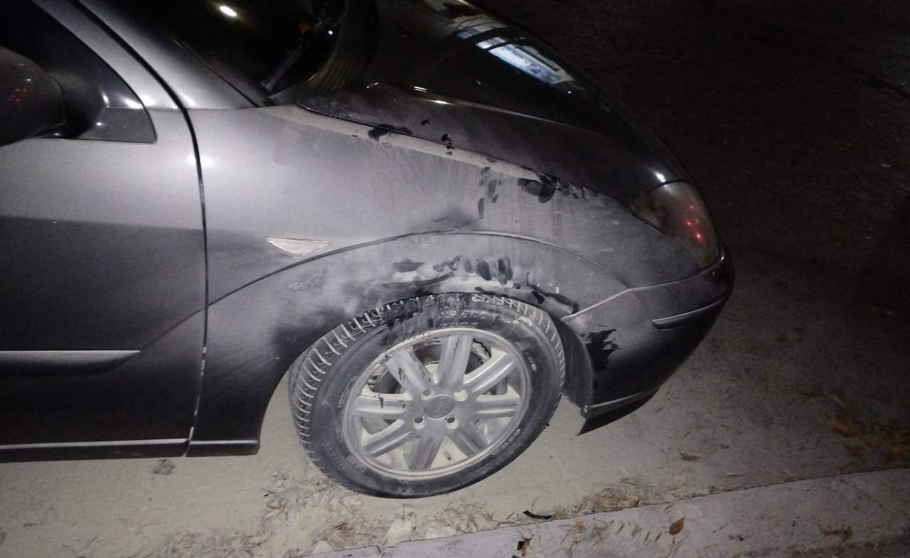 El vehículo sufrió daños en su cubierta delantera del lado derecho y en el guardabarros y el fuego fue sofocado por el dueño del Focus con un matafuegos.