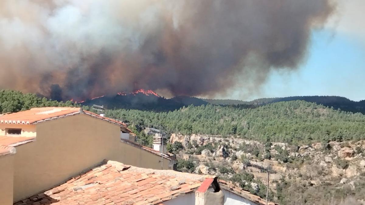 El fuego, que comenzó la tarde del jueves en Villanueva de Viver, en la provincia valenciana de Castellón, obligó a desalojar a 1.500 personas en ocho municipios de las regiones de Valencia y Aragón, señaló la vocera del Gobierno valenciano, Aitana Mas.