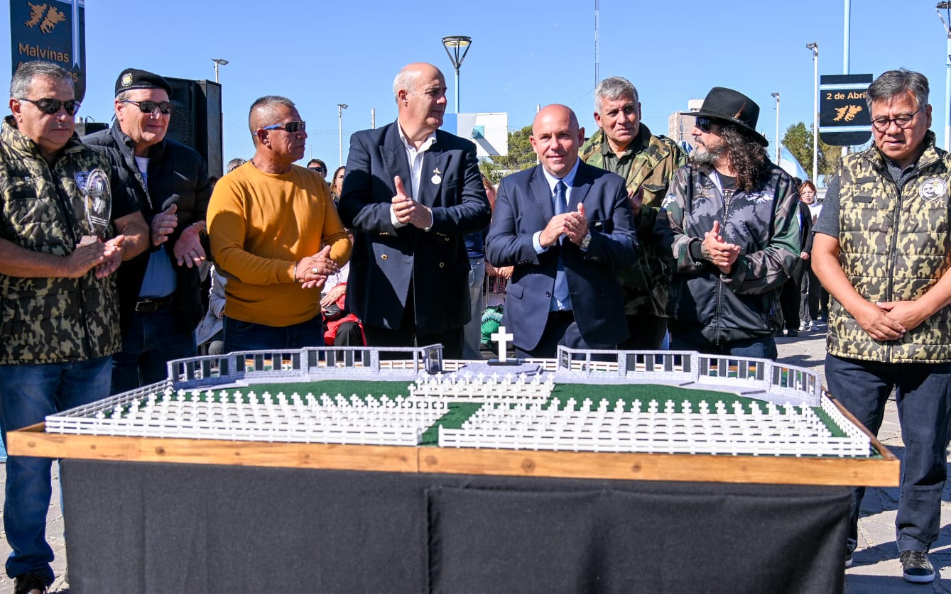 Por último, se descubrió una réplica del Cementerio de Darwin, una realización de Santiago Pereyra, madrynense que ya ha construido la Fragata Granville y el Buque Canberra, que forman parte de la muestra permanente del Centro de Veteranos de Guerra de Puerto Madryn.