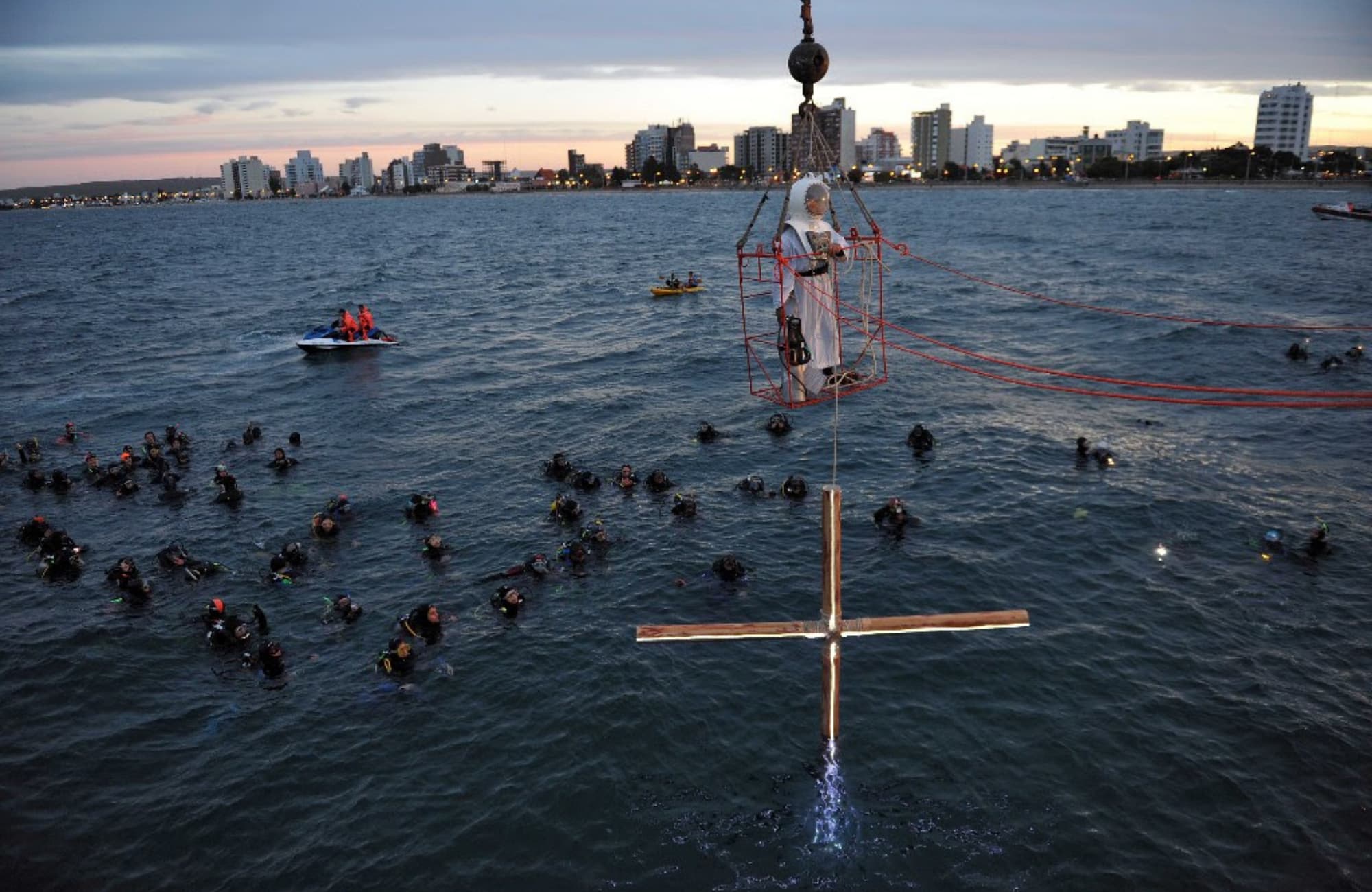 En la organización del Vía Crucis submarino participan, además de la Secretaría de Turismo, la asociación de operadores de buceo, la iglesia “Sagrado Corazón de Jesús” de puerto madryn y experimentados buzos que lideran la procesión en el tramo náutico.