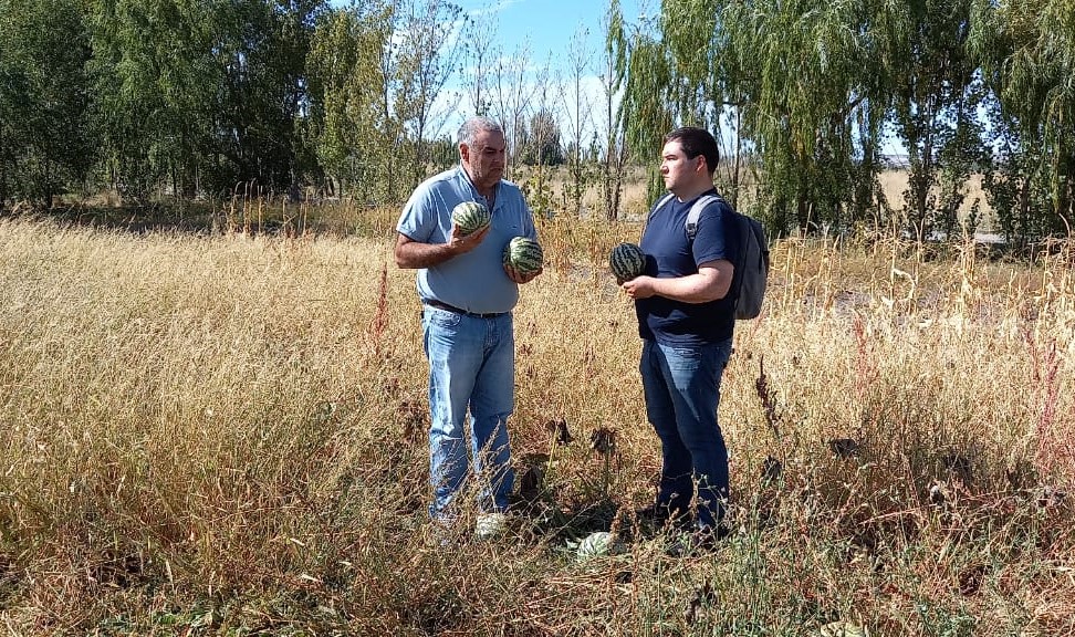 El director de Producción e Industria de la Municipalidad de Gaiman, Leonardo Tapia, acompañó a Juan Cruz Acosta García, referente del Instituto Nacional de Semillas (INASE), organismo que lo envió a la zona con el objetivo de estudiar las características del citron.