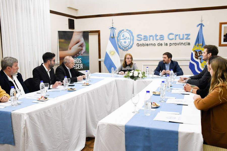 Durante la mesa de trabajo, la mandataria provincial fue acompañada por el ministro de Gobierno, Leandro Zuliani; el secretario de Estado de Ambiente, Mariano Bertinat;el presidente del Consejo Agrario Provincial, Javier De Urquiza; la presidenta del Instituto de Ciencia, Tecnología e Innovación, Luciana González; el director de Servicios Públicos Sociedad de Estado, Nicolás Michudis; la jefa del área de Recursos Naturales y Ambiente del Consejo Federal de Inversiones (CFI), Laura Rossi; y el decano de Facultad Regional Santa Cruz de la Universidad Tecnológica Nacional, Sebastián Puig.