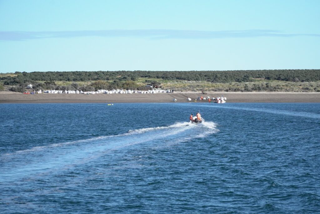 Bravo detalló que “son cuatro las embarcaciones que transportaron los bolsones hasta el barco de Conarpesa, que colaboró en esta tarea tan importante. La actividad finalizará mañana cuando carguemos los bolsones de residuos en los camiones que nos están esperando en el Puerto de Camarones”.