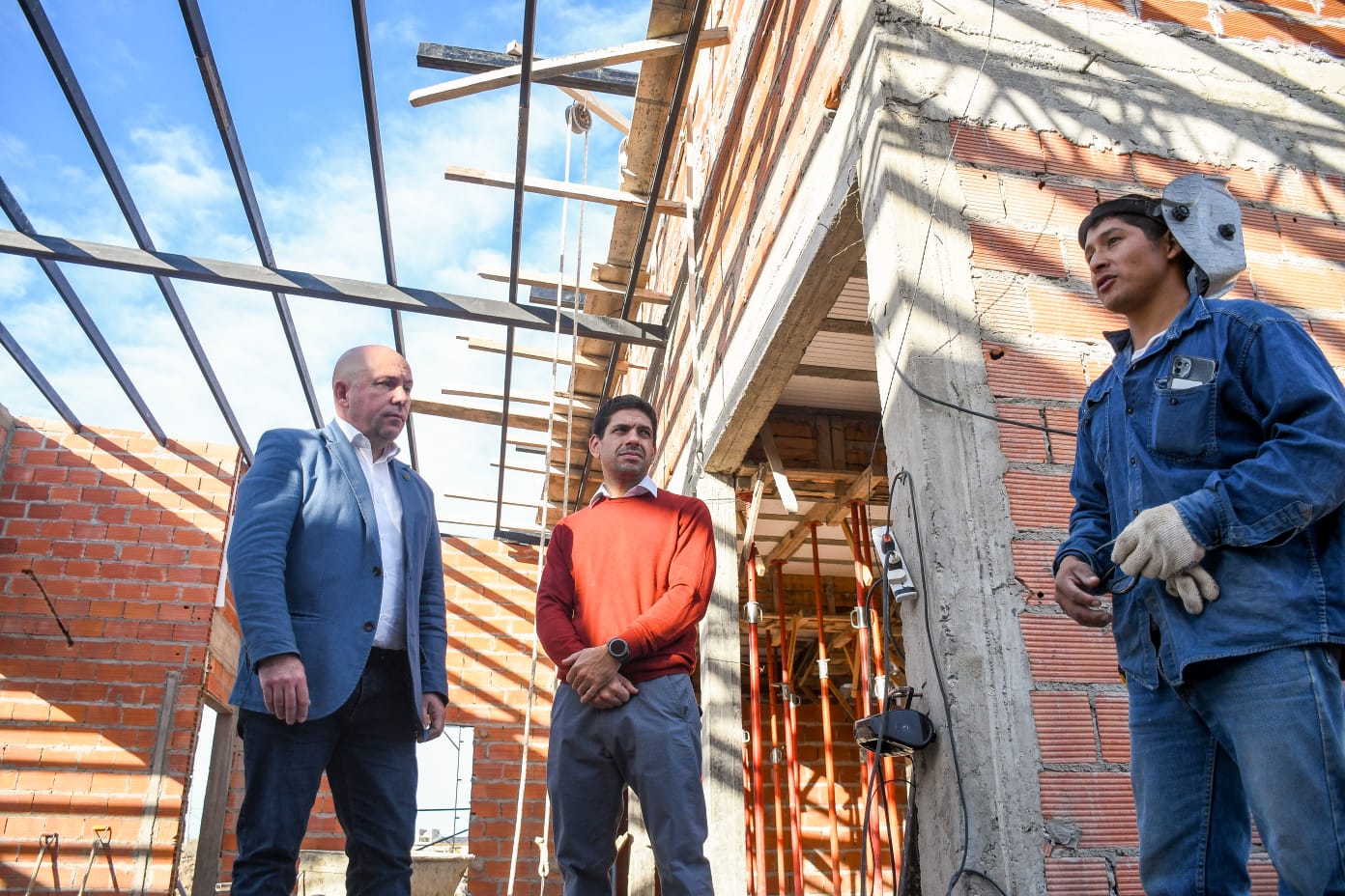 En la recorrida por la construcción del CAPS, Sastre estuvo acompañado por el secretario de Gobierno, Martín Ebene; la secretaria de Obras Públicas y Desarrollo Urbano, Lucía Taylor; el coordinador de Gestión de Obras Públicas, Leonardo Lorenzo, y representantes de la empresa que está realizando la obra.