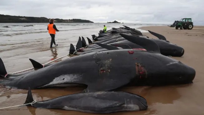 Tristeza en Australia: Mueren 51 ballenas piloto varadas en una playa