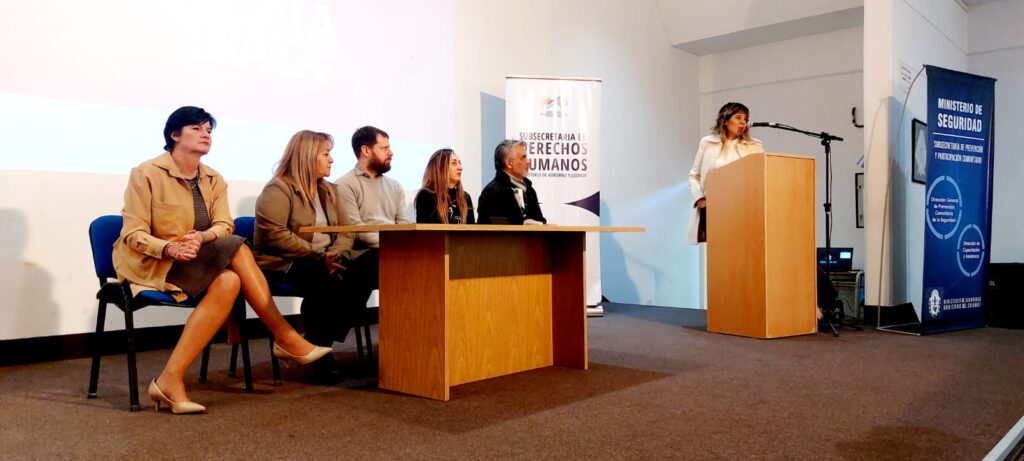 El encuentro se realizó en la sede de la Universidad Nacional de la Patagonia San Juan Bosco (UNPSJB) para definir los criterios de abordaje de estas situaciones. Se contó con la participación de los subsecretarios de Prevención y Participación Comunitaria, Sandra Muñoz y de Derechos Humanos del Ministerio de Gobierno, Mario Cugura; la directora de Género de la Policía del Chubut, comisario general Claudia Bocco y los referentes nacionales y locales del Ministerio de Justicia y Derechos Humanos de la Nación que realizaron las disertaciones.