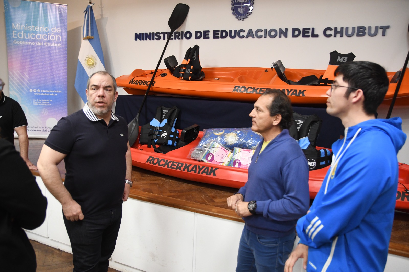 Formaron parte de la entrega el ministro de Educación, José María Grazzini, el intendente de Gualjaina, Marcelo Limarieri; las subsecretarias de la cartera educativa, Silvia Reynoso, Rocío Silva Preciado y Jimena Alemano; el delegado administrativo de la Región III, Claudio Tardon; y el coordinador de la Planta Educativa, Kevin Fuentes Lefipan.