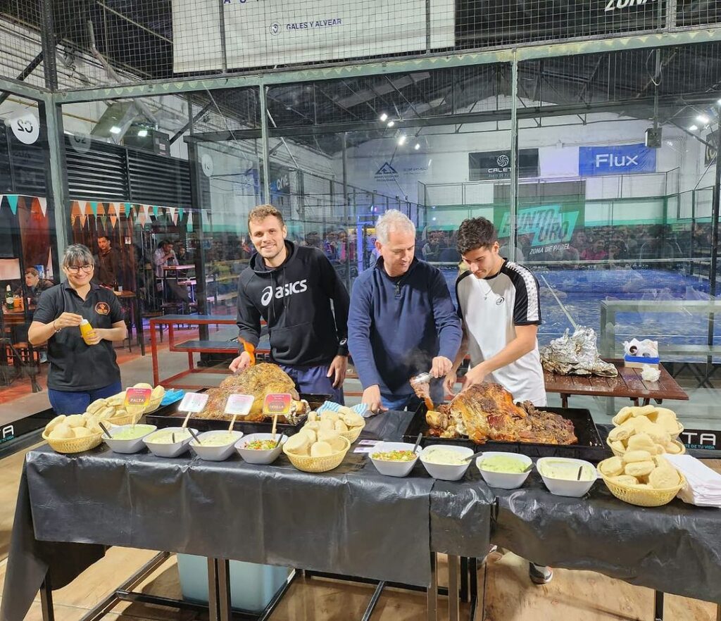 Además del pádel, el fin de semana estuvo acompañado en Punto de Oro por música, sorteos de paletas, un show de una violinista que cerró su presentación tocando el himno nacional y tras la final, los jugadores y todo el público presente se deleitaron de dos patas flameadas.