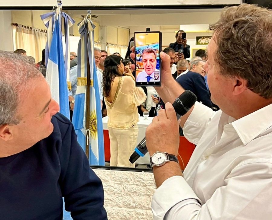 “Tengo una sorpresa para todos ustedes”, dijo Weretilneck a los asistentes. “Sergio Massa quiere saludarlos y agradecernos el apoyo”.