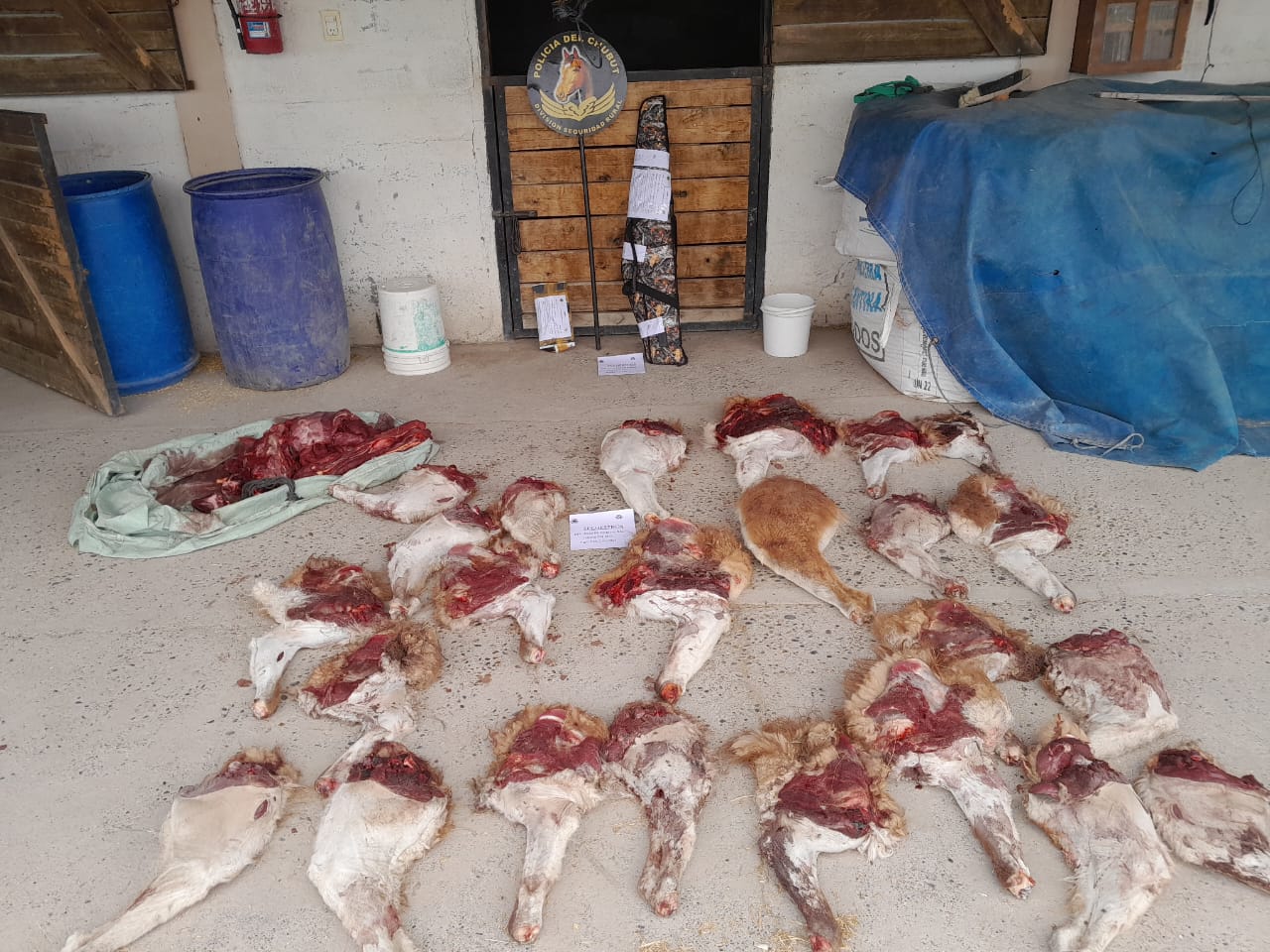 En el comunicado oficial de la Policía dejaron en claro que estos animales habrían sido recientemente cazados y que, además, los sujetos tenían una carabina y dos cuchillos.