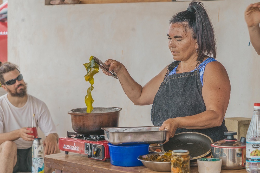 “La idea es que la gente no solo venga a comer, sino también a disfrutar. Del mar, un atardecer, una historia. Además, si la marea lo permite los llevo a recolectar algas y les explico lo que sé”, detalla Puracchio. “Es una experiencia muy personalizada”, con todos los sentidos de la Patagonia chubutense.