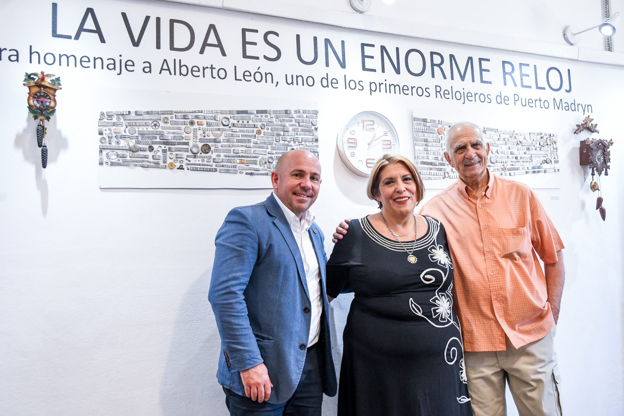 Sastre inauguró una muestra en homenaje a Alberto León, histórico relojero de Puerto Madryn