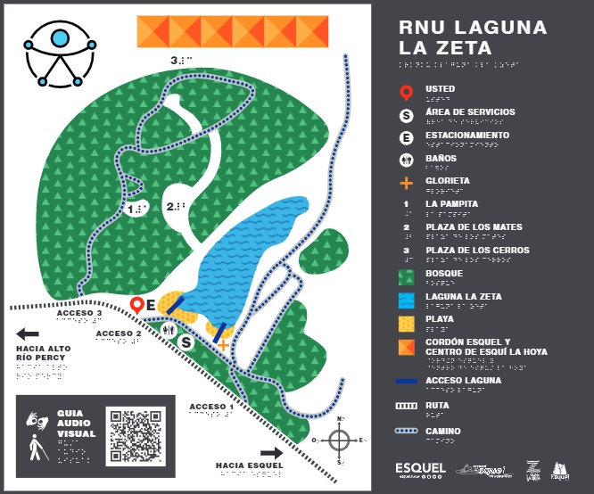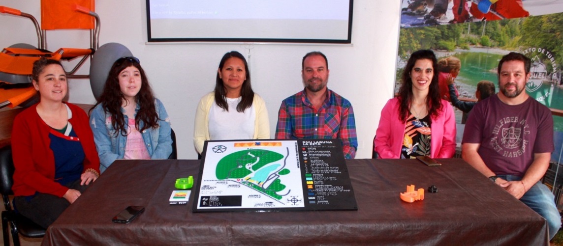 Esta mañana se presentó el mapa háptico de la Reserva Natural Urbana Laguna La Zeta en la Secretaria de Turismo de Esquel, con la presencia del secretario Gustavo Simieli, el director Guillermo Clavé, las integrantes del equipo técnico: licenciada Mariela Garayo y Gianella Gutiérrez, la presidente del Consejo Municipal de Discapacidad, Geraldine Roberts y la docente de la escuela 527; Patricia Helman.
