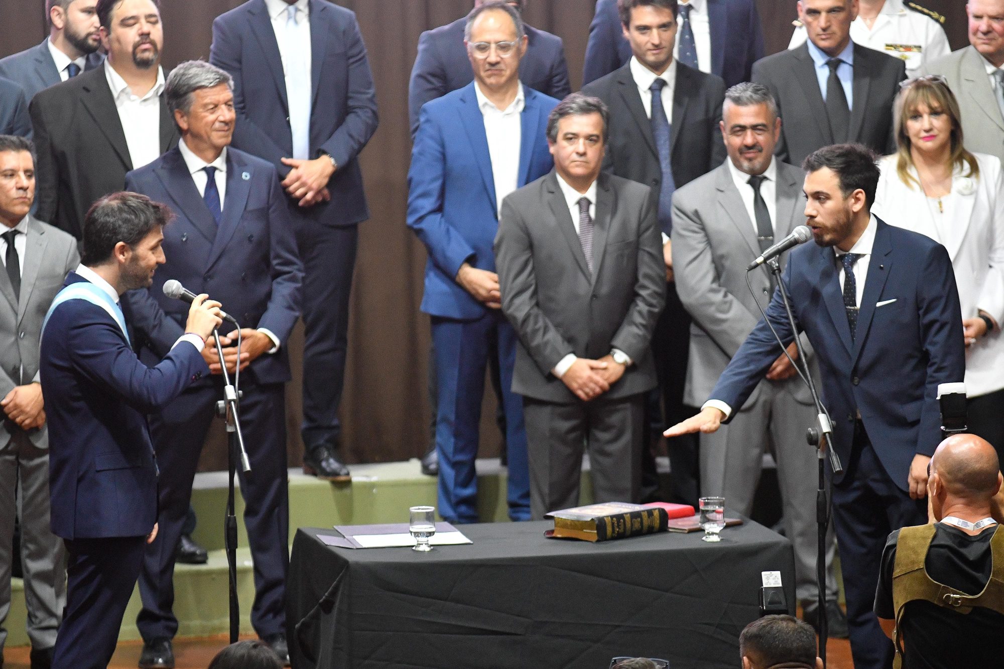 Tras su discurso frente a militantes políticos, sociales, clubes deportivos, culturales y vecinos que se acercaron a acompañar al actual equipo de gobierno, y luego de una extensa jornada en la que se pudo disfrutar de espectáculos para toda la familia, el gobernador del Chubut, Ignacio “Nacho” Torres, tomó juramento a los funcionarios que lo acompañarán en la gestión.