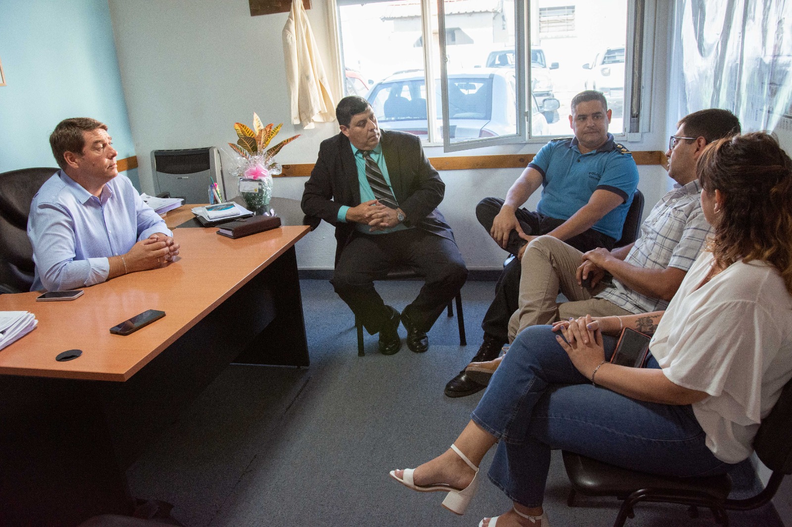 Durante la reunión, Biss estuvo acompañado por la secretaria de Gobierno y Seguridad Ciudadana, Karina Barneche, y por el subsecretario de Seguridad Ciudadana, Juan Emilio Villagrán.