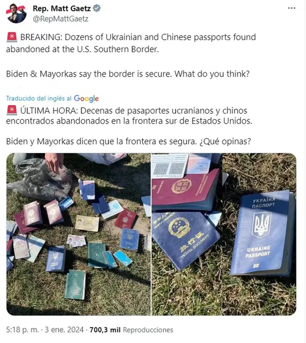 Un congresista estadounidense quiso dar cuenta de la crisis migratoria en su país con una foto de documentos ucranianos y chinos, con la sorpresa de la aparición de la tarjeta que se usa para viajar en transporte público en Argentina.