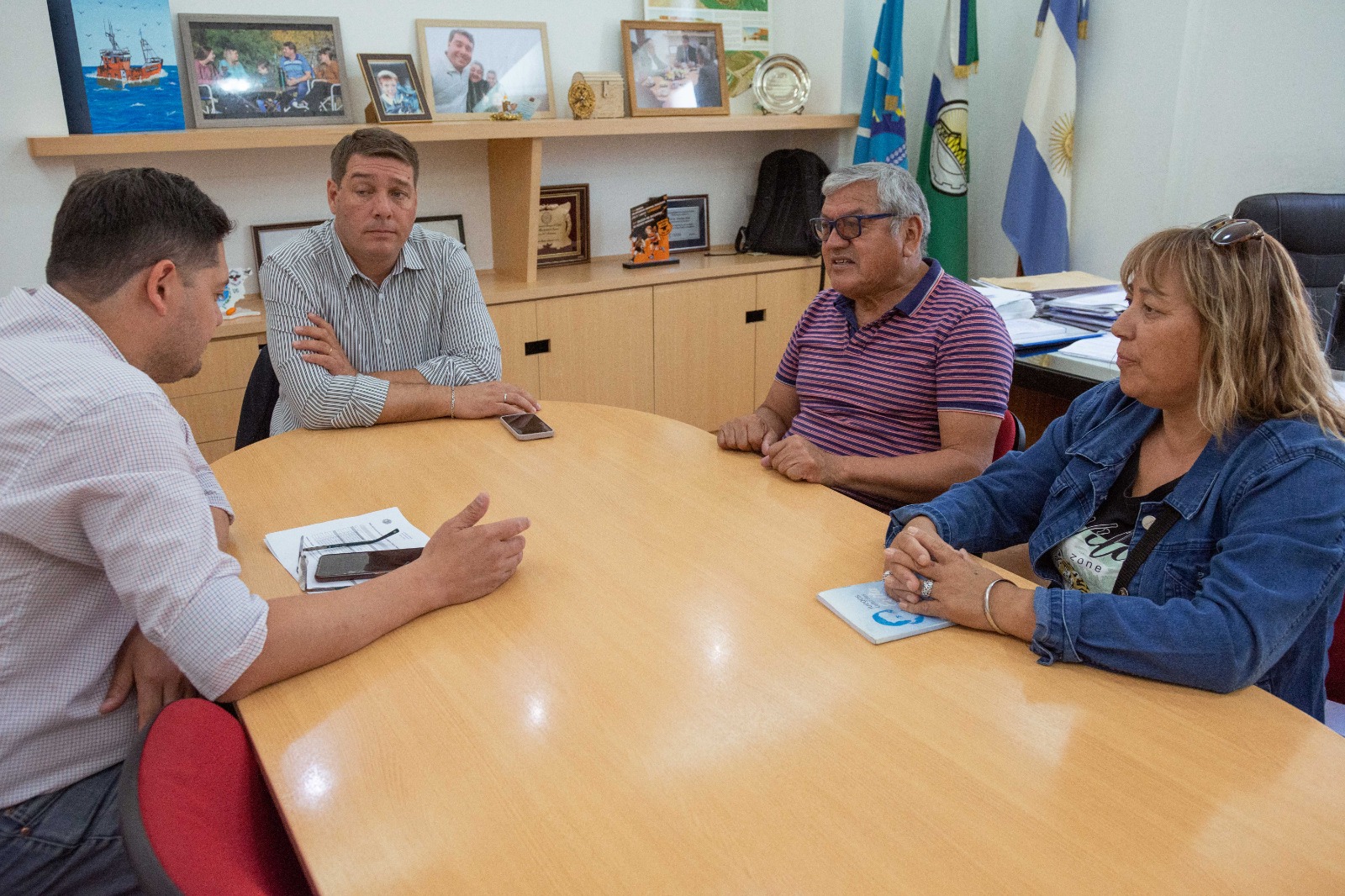 El mandatario municipal acompañado por el secretario de Planificación y Desarrollo Urbano de la Municipalidad de Rawson, Pablo Villalobos, recibió al presidente del club, Carlos Proboste, para conversar sobre la inauguración del Gimnasio de Musculación, el avance de distintos proyectos y la celebración del 50 aniversario que se celebra en el mes de febrero.