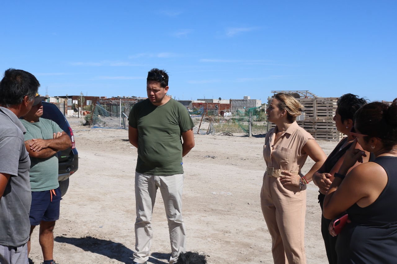 Con el objetivo de relevar el estado de los servicios públicos con los que cuentan las familias de la Chacra 8, la Defensora del Pueblo, Claudia Bard, el Secretario de Planificación y Desarrollo Urbano, Pablo Villalobos, la Secretaria de Desarrollo Social, Familia y Salud, Anahí Olivera, y la Subsecretaria de Promoción Social, Mirna Vallejos conversaron con vecinos y observaron el estado precario de las conexiones eléctricas actuales que utilizan actualmente.