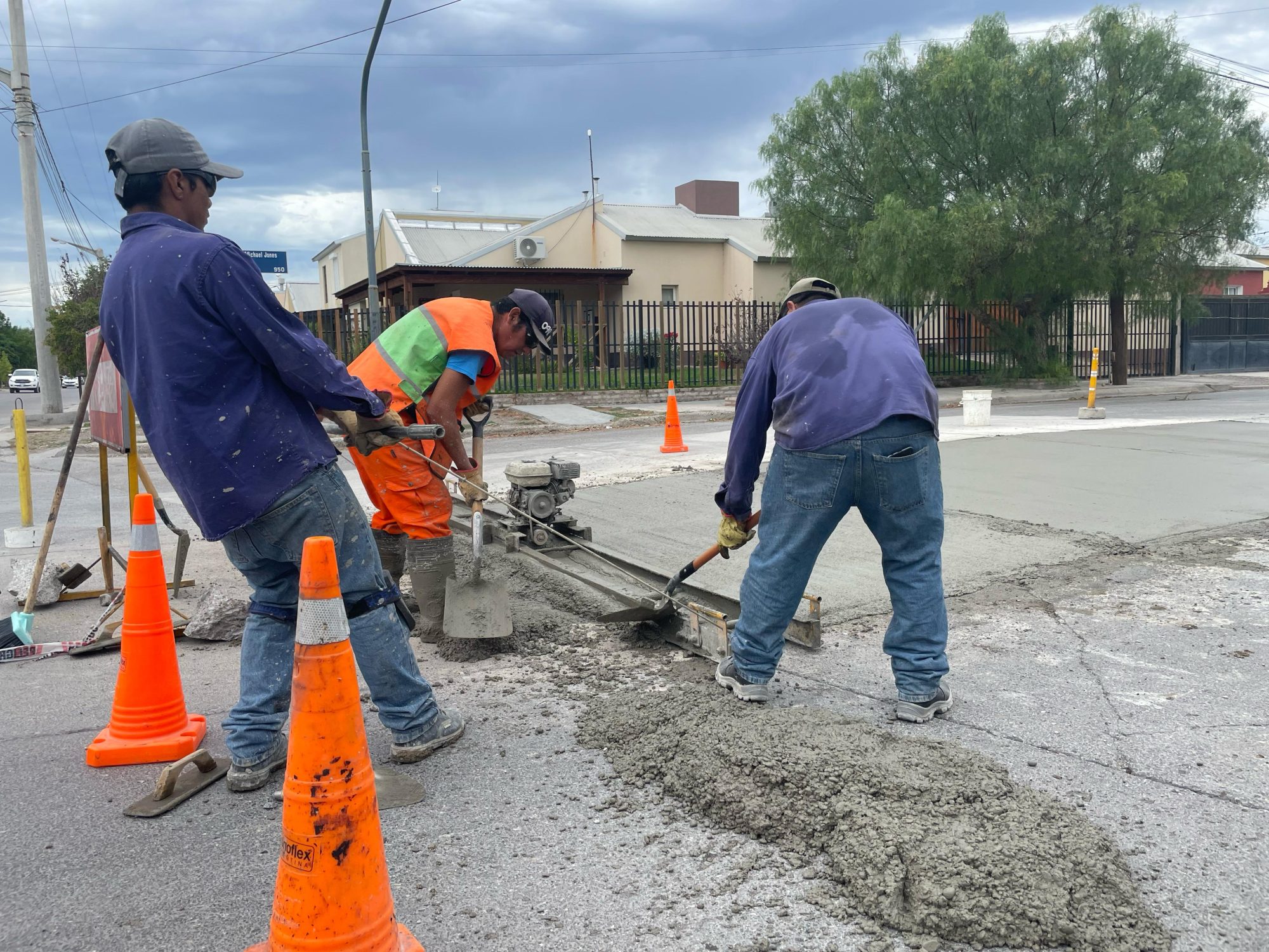 A fin de optimizar la fluidez en el tránsito y ofrecer seguridad al automovilista, la Secretaría de Servicios Públicos y Ambiente de Trelew continúa con el plan de mejoramiento vial. Una cuadrilla municipal trabajó ayer en la remediación del hormigón de calles Michael Jones y Marconi.