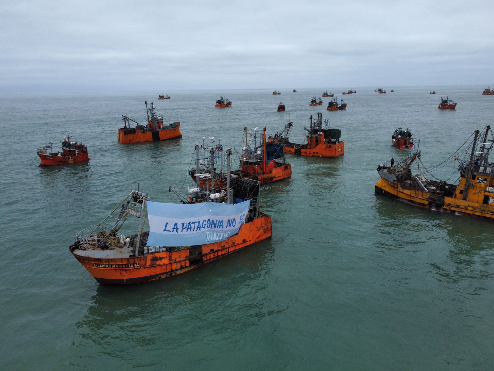 En este sentido, fue invitado a navegar en un barco de la Flota Amarilla que llevaba una bandera argentina con la consigna “La Patagonia no se rinde”.