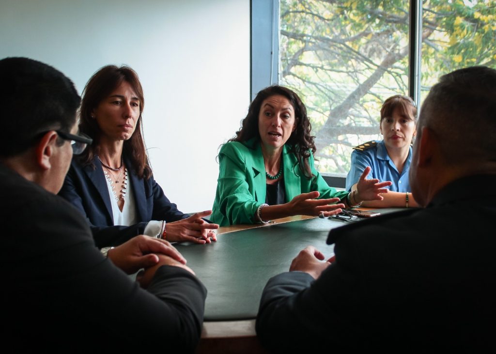 La Dra. Camila Banfi Saavedra, Presidenta del Superior Tribunal de Justicia de Chubut junto al Subsecretario de Seguridad, Dr. Claudio Alfredo Fernández y al Comisario General Mauricio Zabala, subjefe de la Policía del Chubut, suscribieron este miércoles un acta acuerdo para difundir en las Comisarías de la Mujer el material audiovisual de una campaña de divulgación y sensibilización sobre derechos en materia de género impulsada por la Oficina de la Mujer y Violencia de Género del STJ.
