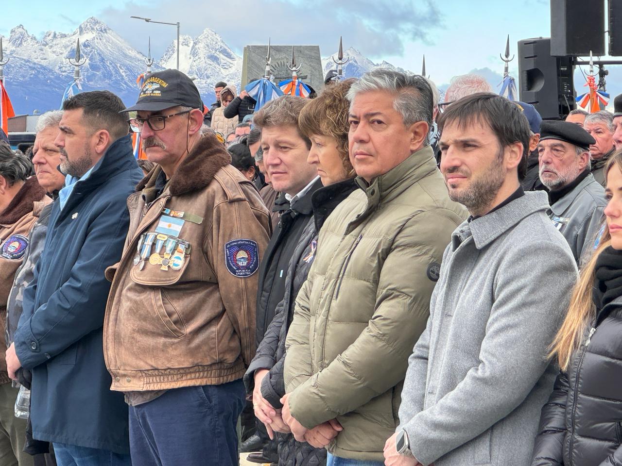 En esta ocasión, Torres estuvo acompañado por el gobernador de Tierra del Fuego, Antártida e Islas del Atlántico Sur, Gustavo Melella; el gobernador de Neuquén, Rolando Figueroa; el intendente de Ushuaia, Walter Claudio Raúl Vuoto; senadores y diputados nacionales; legisladores provinciales; concejales locales; veteranos de Malvinas; fuerzas de seguridad; autoridades eclesiásticas; y vecinos de la zona que se acercaron a participar de la conmemoración realizada en el Monumento Héroes de Malvinas de la ciudad de Ushuaia. También enviaron su acompañamiento los gobernadores Alberto Weretilneck, de Río Negro; Claudio Vidal, de Santa Cruz; y Sergio Ziliotto, de La Pampa.