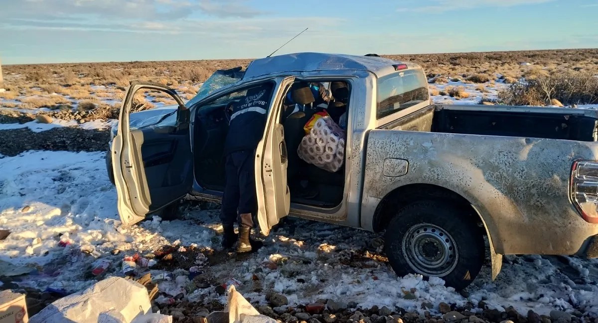 El vuelvo se produjo el miércoles a la tarde en la Ruta Provincial N° 74. Fue en cercanías de Río Mayo. El accidente se produjo por la acumulación de barro y las malas condiciones de la cinta asfáltica.