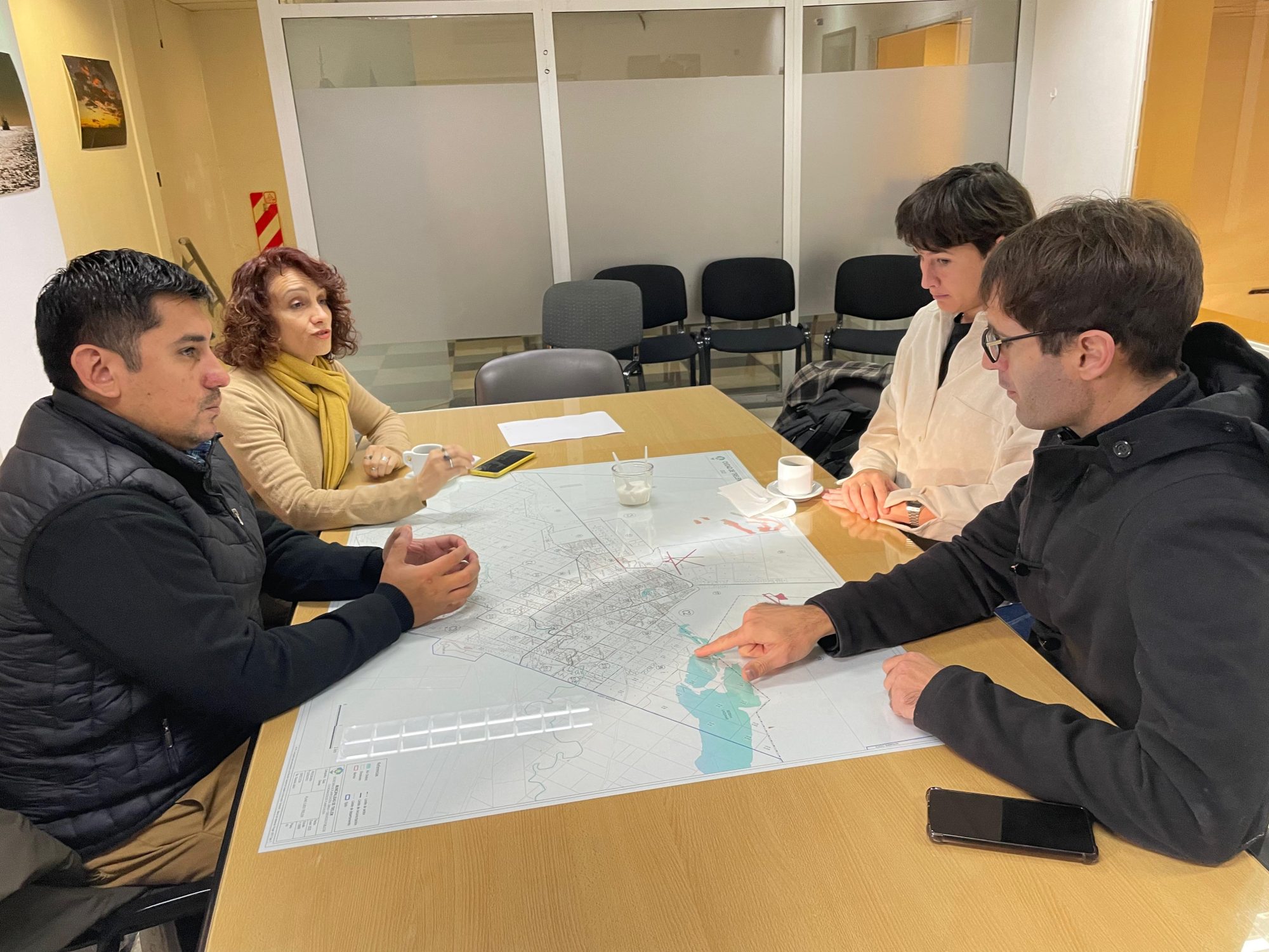 El secretario de Producción, Industria, Comercio y Turismo, Juan Pavón; y los coordinadores de Producción, Lucas Cabrera; y de Ambiente, Mariana Gigena, se reunieron con Catalina Sáenz, de la empresa Ozono SAS, para interiorizarse sobre el proyecto ambiental que fomenta el manejo sustentable de la tierra.