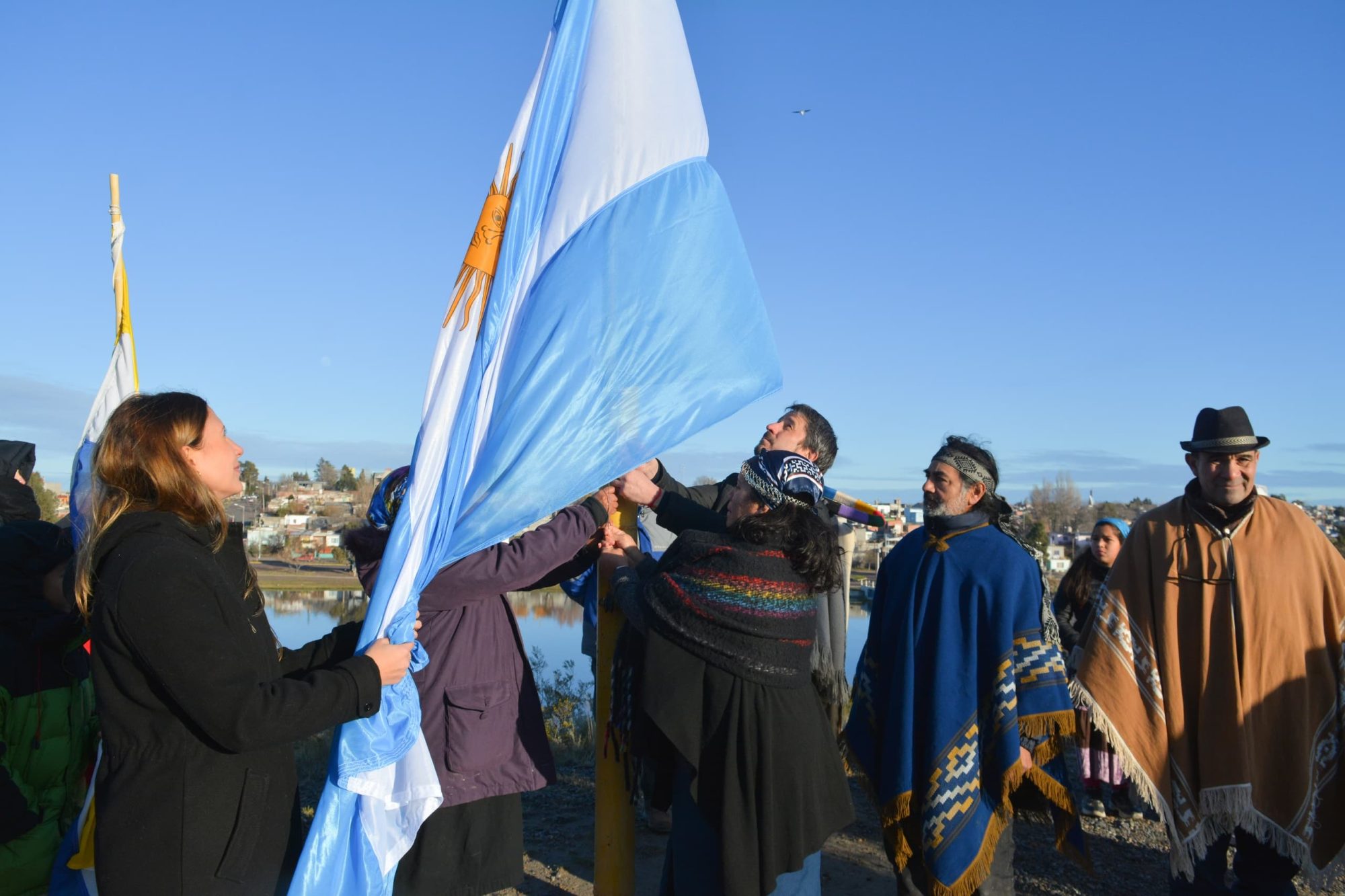 El intendente Gerardo Merino participó este lunes del izamiento del pabellón nacional en conmemoración del Año Nuevo (Wiñoy Tripantu) de los Pueblos Originarios del Hemisferio Sur. La ceremonia se desarrolló en el Rewe, ubicado en la reserva natural Cacique Laguna Chiquichano, y contó con la presencia de referentes de comunidades preexistentes, además de funcionarios municipales.