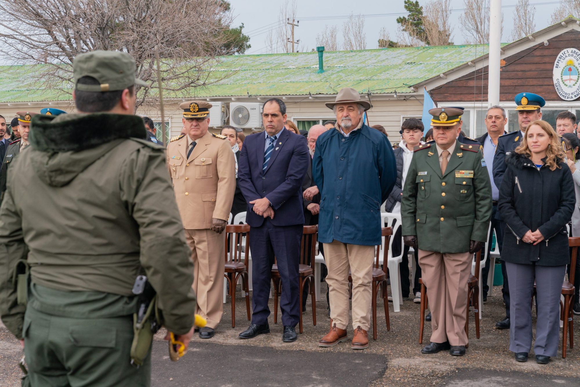 En la ocasión, el comandante y jefe del Escuadrón 41 de Gendarmería Nacional en la ciudad, comandante Eduardo Javier Gómez, estuvo acompañado por el intendente Othar Macharashvili; el viceintendente Maximiliano Sampaoli; la intendente de Rada Tilly, Mariel Peralta; concejales; autoridades municipales, provinciales y judiciales, miembros de las Fuerzas Armadas y de Seguridad.
