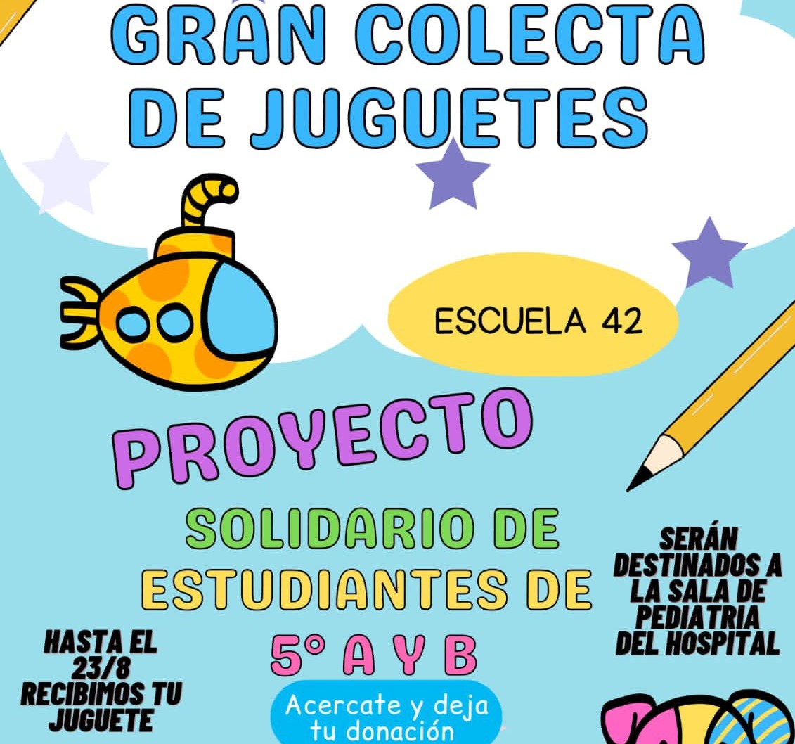Los juguetes se recepcionarán en la Escuela N° 42 en horario escolar y la fecha límite para donar es el 23 de agosto.