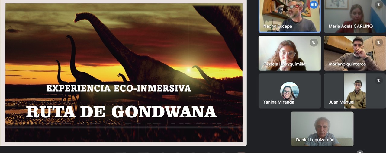 Durante el meet, se realizó una presentación virtual sobre las principales atracciones geológicas y paleontológicas del Valle de Gondwana, a cargo del Investigador de CONICET y del Museo Paleontológico Egidio Feruglio (MEF), Ignacio Escapa; quien enfatizó la importancia de la transferencia de narrativas científicas para el desarrollo de nuevos productos turísticos y educativos.