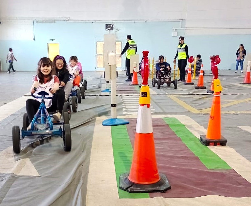 A su vez, en otro tramo de las actividades, los pequeños también hicieron un recorrido por la pista vial de karting, que constituye un espacio destinado para la circulación donde pueden implementar las pautas y normas aprendidas.