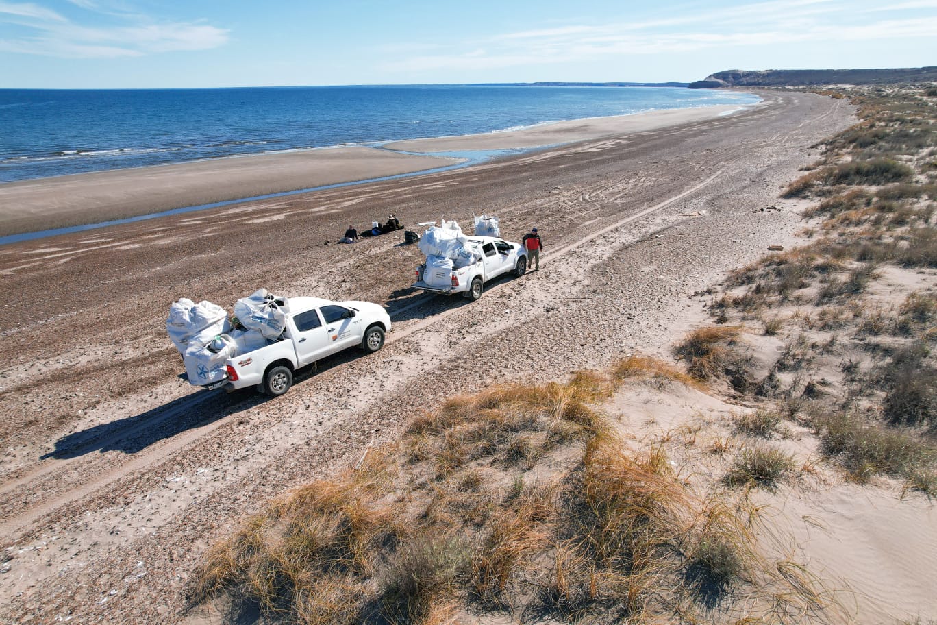 Reforzando las acciones que se llevan adelante desde la Mesa Técnica Provincial de Residuos Pesqueros, se realizó una nueva limpieza en una zona del Área Natural Protegida Península Valdés, donde se registra una intensa acumulación de residuos plásticos que llegan desde el mar a las costas.