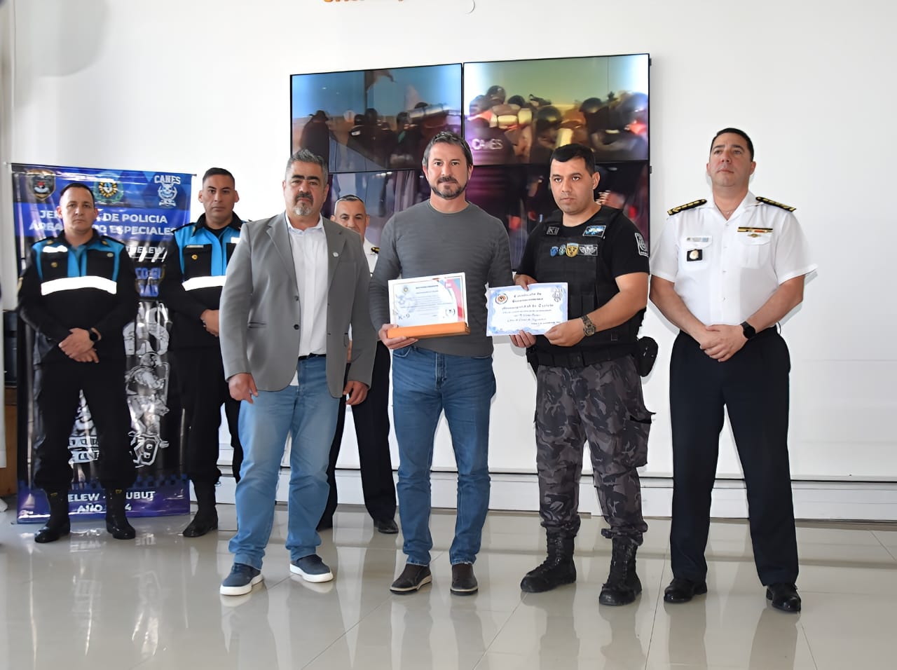 El jefe distrital de Trelew estuvo presente este martes en el el acto de finalización del “IV Curso guía de canes de seguridad”; ceremonia que se realizó en la Sala de Situación de Jefatura de Policía en Rawson.