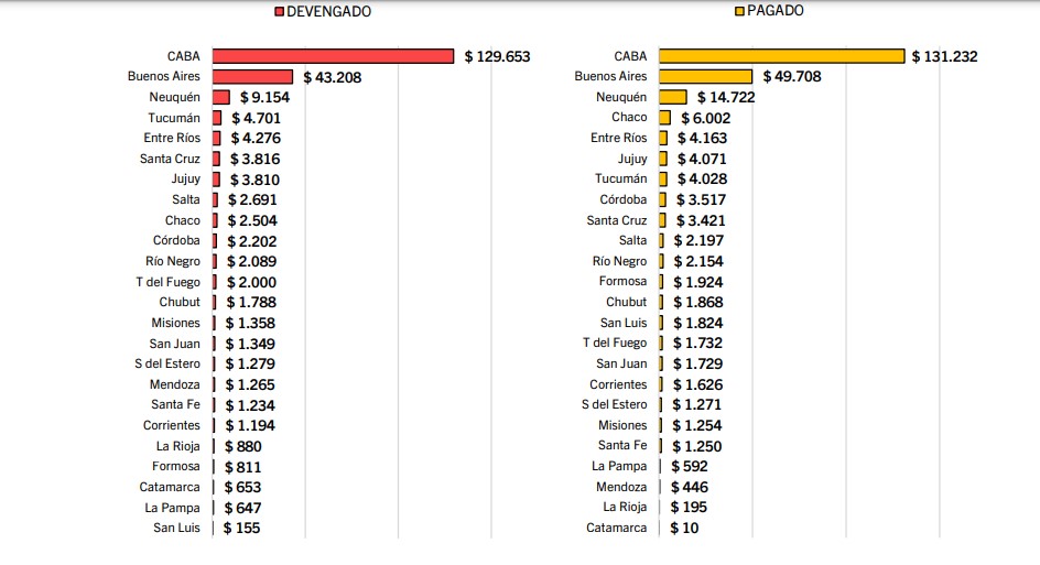 CABA embolsó en octubre de este año un total de $ 131.232 millones en concepto de fondos discrecionales, seguido de provincia de Buenos Aires con $ 49.708.