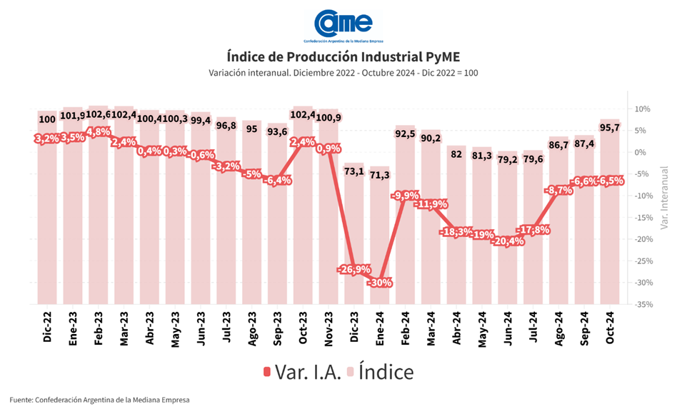 Los resultados surgen del Índice de Producción Industrial Pyme (IPIP) que elabora CAME, con una muestra que alcanzó a 420 industrias pyme a nivel federal.