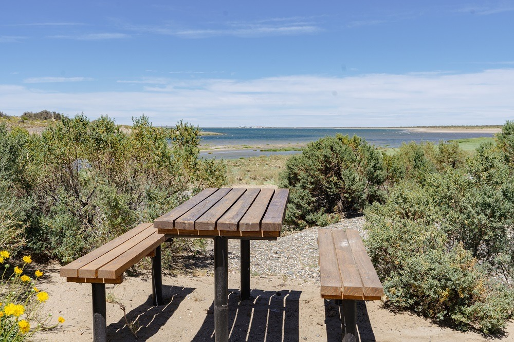 Camping Bahía Arredondo: A 800 metros de la costa y a 90 km al sur de Camarones, ofrece nueve sitios de acampe, baños secos, un fogón comunitario y el refugio “Puesto Julie”, equipado con cocina. Está próximo al Glamping Isla Leones.