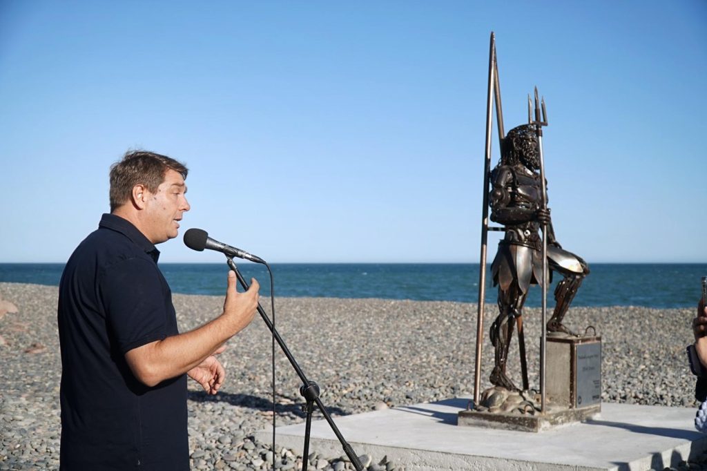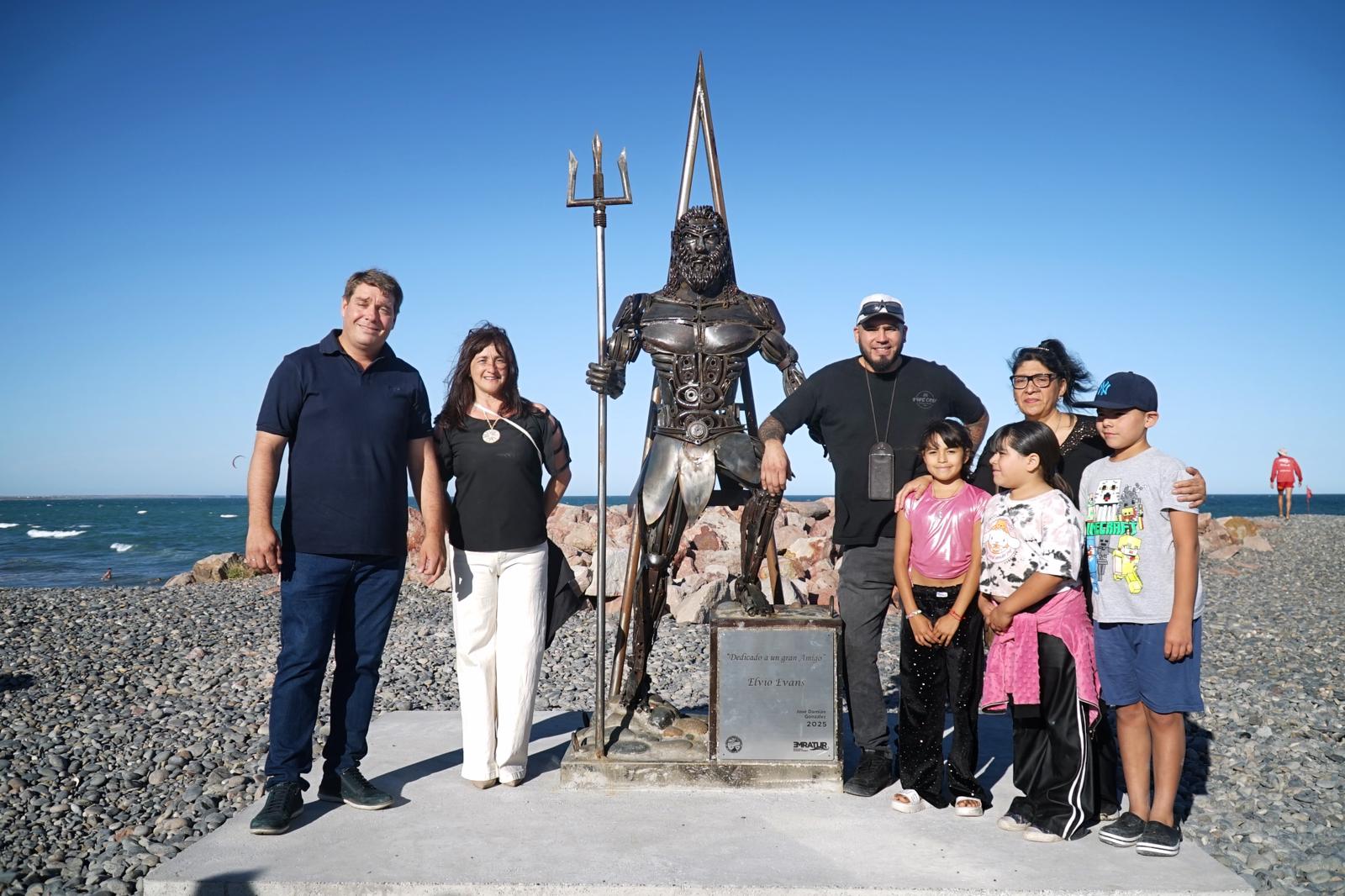 “En la oportunidad, Damián nos comentó su interés en querer donar esta gran escultura a la ciudad y a partir de ello, se colocó en Playa Unión”, indicó, y añadió que “conociendo la historia que hay detrás de esa escultura, nos pareció más que acertado poder exhibirla en reconocimiento a su amigo, Elvio Evans, ya fallecido, quien lo ayudó cuando él llegó a Rawson”.