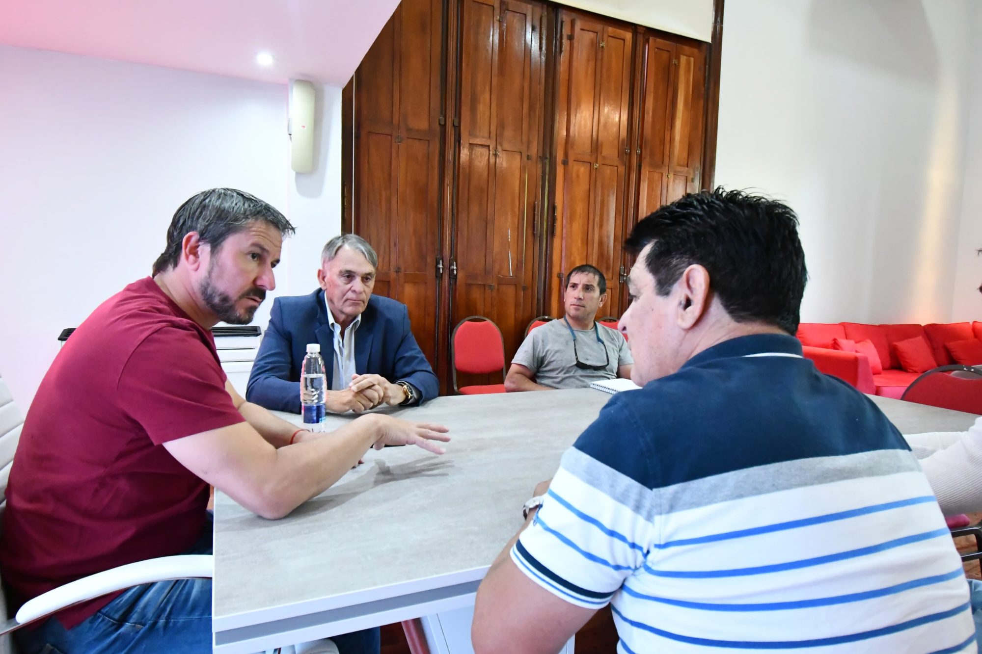 El intendente de Trelew, Gerardo Merino, recibió en su despacho a representantes de la Unión Tranviarios Automotor (UTA), encabezados por José Pérez, junto a miembros del consejo directivo del gremio.