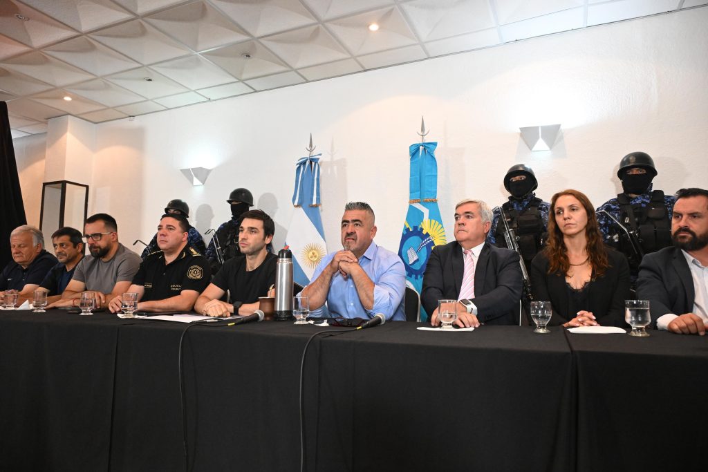La conferencia se llevó a cabo en el Hotel Tehuelche de la localidad de Esquel, y acompañaron al titular del Ejecutivo, el ministro de Seguridad y Justicia, Héctor Iturrioz; el jefe de la Plana Mayor de la Policía del Chubut, comisario Andrés García; el procurador general Jorge Miquelarena; el procurador de Esquel, Ismael Cerda; la jefa de Fiscalía de dicha localidad, María Bottini; y los intendentes de distintas localidades cordilleranas.