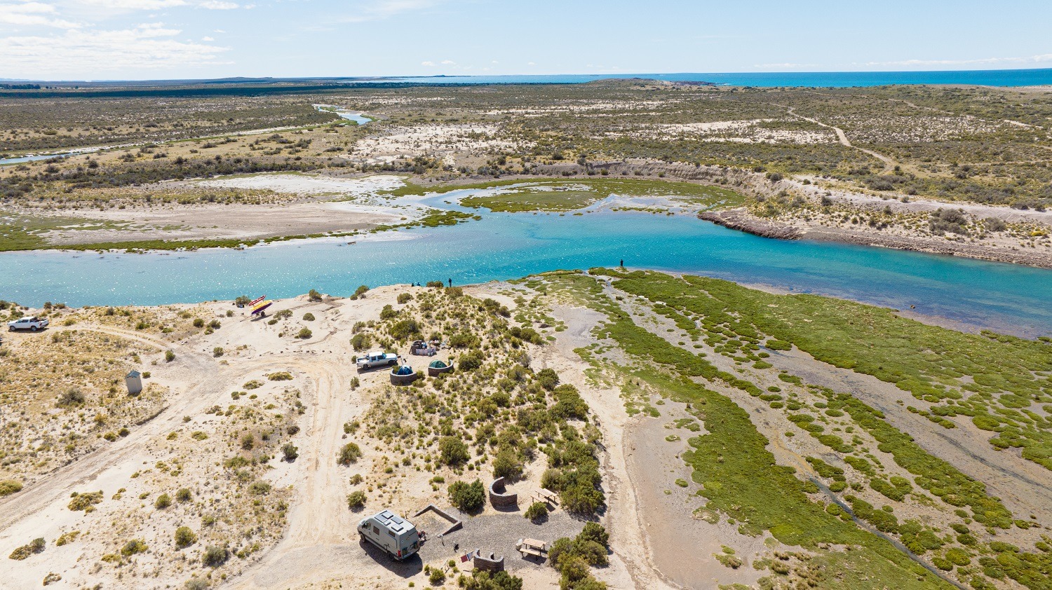 La interacción entre el agua y la tierra convierte a este rincón en un festín para la vida silvestre. En las marismas crece la salicornia, una planta resistente a la salinidad que, además de su uso culinario, se lo conoce como el “espárrago de mar”, es el alimento predilecto de guanacos y otras especies herbívoras.