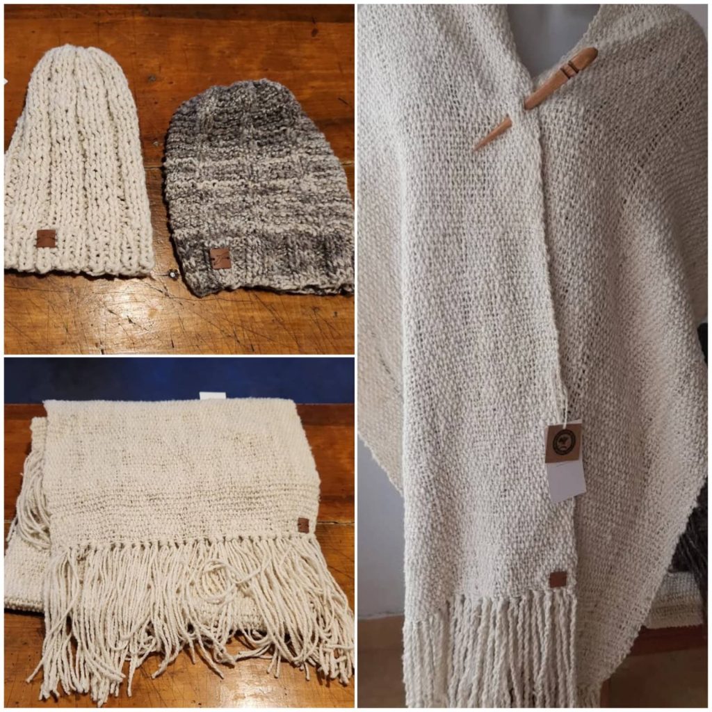 ALAS elige centrarse en cuatro productos clave: pashminas, alfombras en telar mapuche, gorros y medias. “No queremos abarcar demasiado; preferimos perfeccionar lo que hacemos”, afirma Alejandra. Las pashminas, prácticas y elegantes, son de las prendas más vendidas. Las alfombras, tejidas en telar mapuche, conservan los colores naturales de la oveja, mientras que los gorros y medias destacan por sus distintos puntos y texturas.