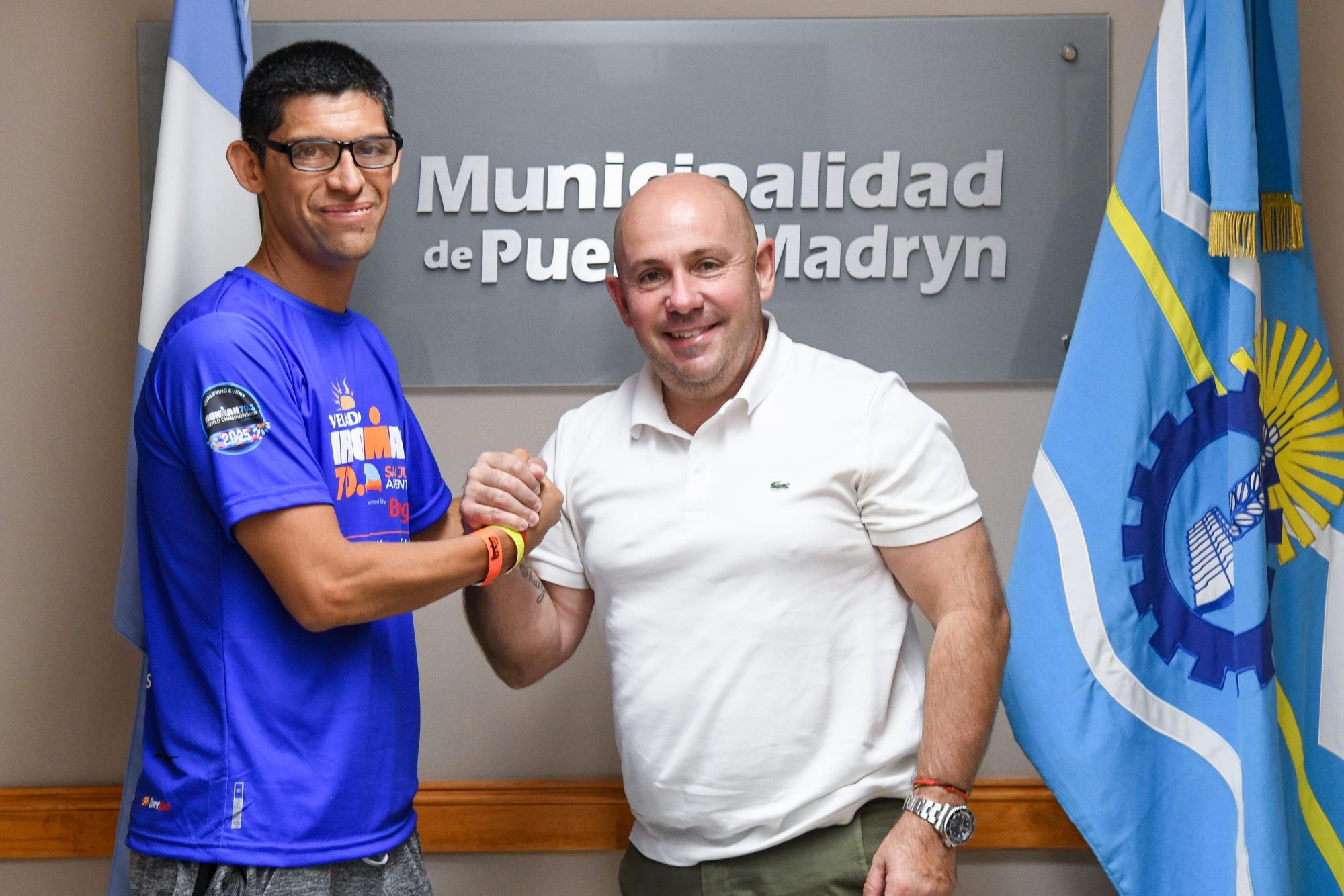 Al respecto, el Intendente dijo: “Recibimos en el Municipio al madrynense Marcos Paves, quien estará representando a nuestro país en el Mundial de Ironman que se realizará en España”.